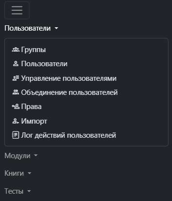 Верхнее меню используется для доступа ко всем функциям программы. На мобильных устройствах верхнее меню сворачивается в иконку в виде гамбургера (Рисунок 2).